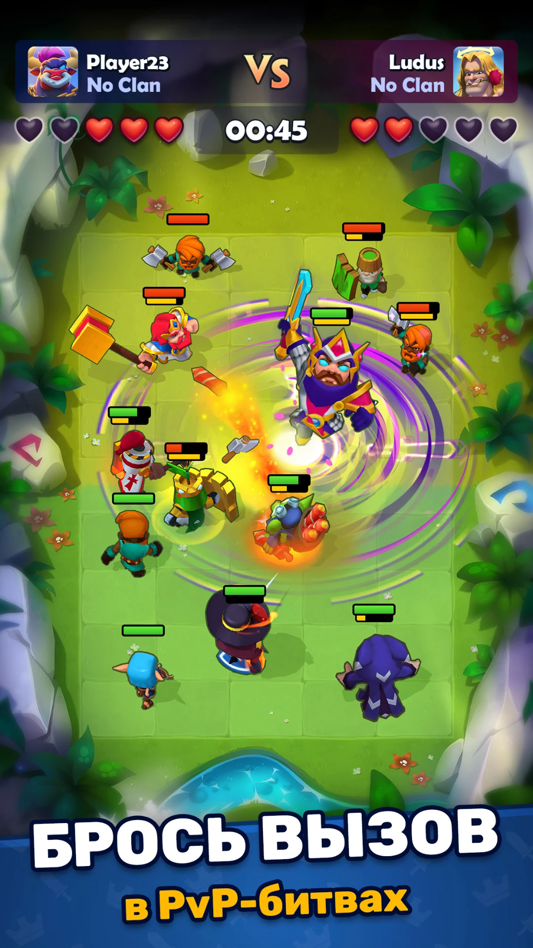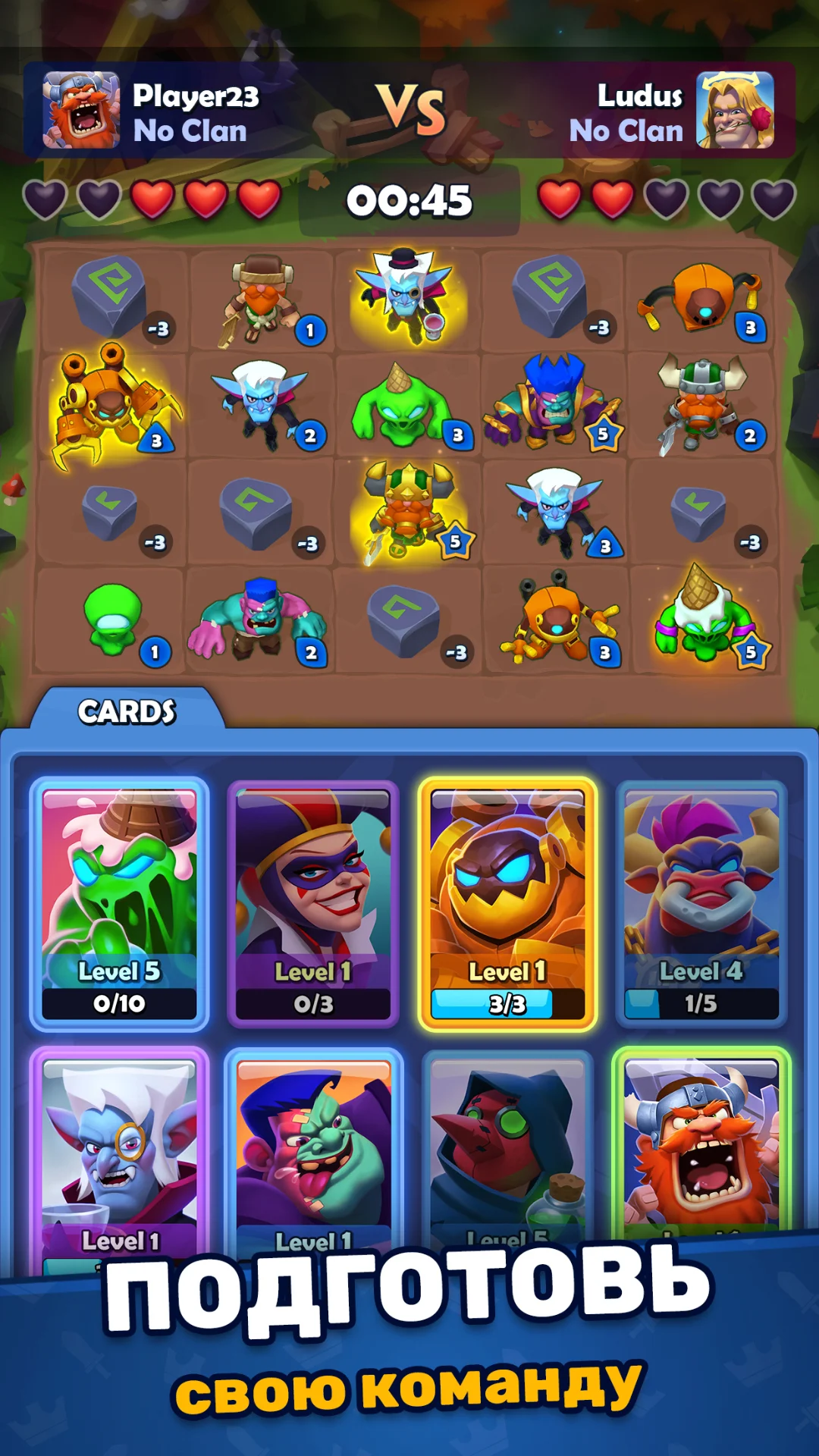 В бою важно не только иметь сильных героев, но и правильно их расставлять, использовать способности в нужный момент и предугадывать действия врага. Победа приносит золото и рейтинговые очки, поражение — опыт и понимание своих ошибок. Соревновательный дух здесь зашкаливает!