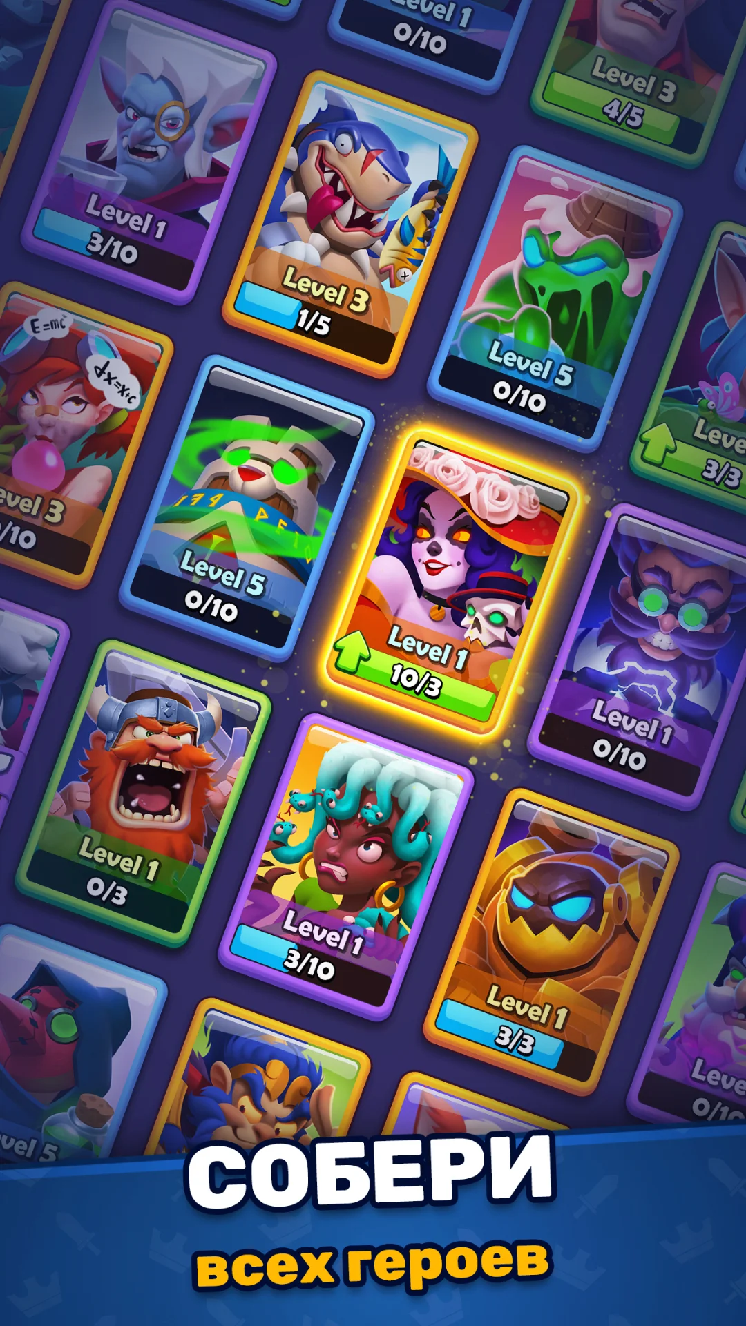 Кроме того, ты можешь прокачивать уже имеющихся героев, вкладывая в них золото и ресурсы. С каждым уровнем они становятся сильнее, открывают новые атаки и лучше проявляют себя в бою. Коллекция карт — это не просто галерея, а твой основной инструмент влияния на арене. Собирай, комбинируй, становись сильнее!